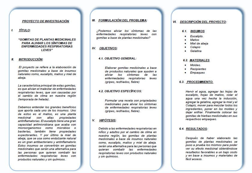La elaboración de gomitas medicinales a base de insumos naturales como, eucalipto, matico y miel de abeja, alivian el malestar de enfermedades respiratorias leves, que son causadas por el cambio de clima en nuestra región.