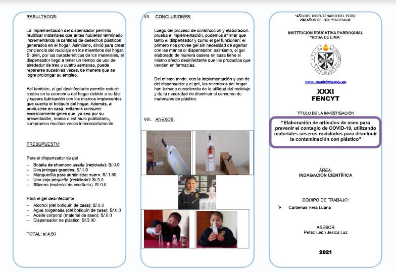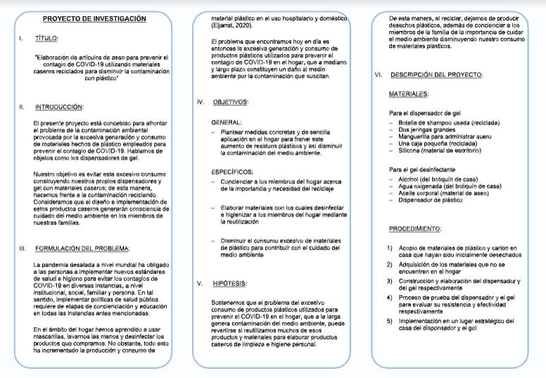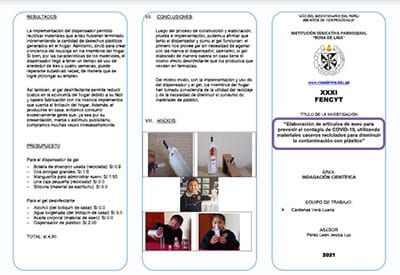"Elaboración de artículos de aseo para prevenir el contagio de COVID-19, utilizando materiales caseros reciclados para disminuir la contaminación con plástico"