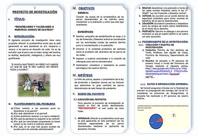 El proyecto de investigación es una problemática social que está generando esta pandemia con el aumento de perros abandonados por ello tomamos la iniciativa de recuperar y valorar a nuestros amigos de cuatro patas, ofreciéndole una oportunidad de vida diferente, transformando el sufrimiento de estos animales en esperanza y amor, teniendo la vocación de salvarlos.